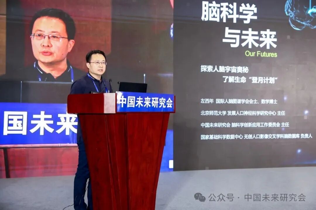 国际人脑图谱学会会士、中国未来研究会理事、北京师范大学认知神经科学与学习国家重点实验室发展人口神经科学研究中心主任左西年作了《脑科学与未来》的报告,探讨围绕脑科学、人口神经科学等前沿领域的前瞻性科研探索和创新应用发展。