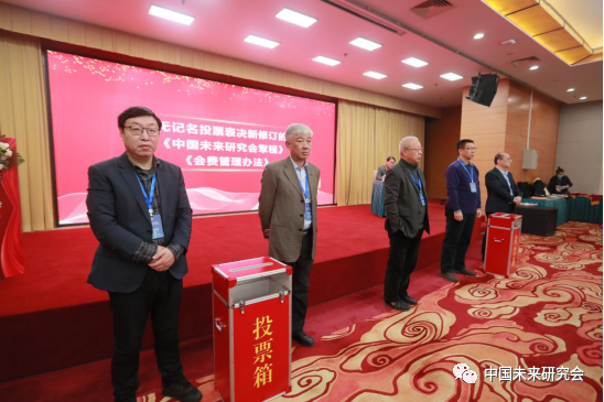 大会以无记名投票方式审议通过了《中国未来研究会章程》和《中国未来研究会会费管理办法》。大会选举产生了中国未来研究会第八届理事会和第八届监事会。在八届监事会第一次会议上,顾朝林当选为监事长,陈恩红当选为副监事长。中国未来研究会第八届理事会第一次会议选举产生了学会负责人和常务理事。金灿荣当选为八届理事会理事长,张延岐、刘益东、韦在胜、汪扬、王革当选副理事长。经理事长提名,理事会通过,聘任陈辉担任秘书长。