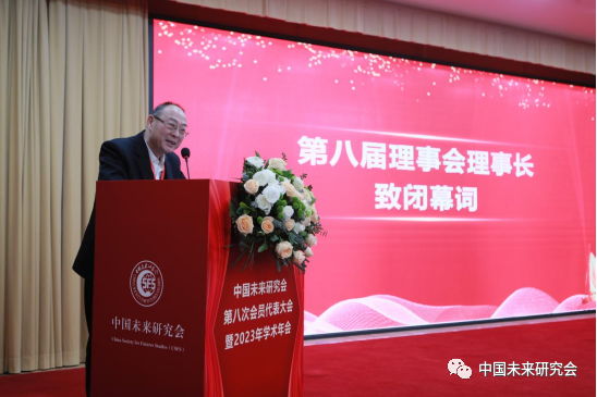 发表了热情洋溢的闭幕词。他强调了中国未来研究会在新时代背景下的重要使命和责任,号召所有会员继续发扬勇于探索、敢于创新的精神,为促进中国乃至世界的未来发展做出更大的贡献。他的话激励了所有代表,坚定了大家在未来研究领域继续奋斗的决心。